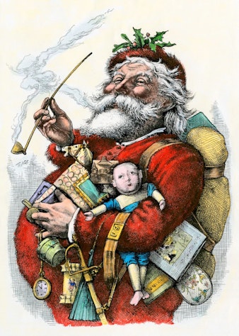 Because he was involved with many miracles and in a well-known tale, three young girls are saved from a life of prostitution when Nicholas secretly delivers three bags of gold to their indebted father, which can be used for their dowries. Nicholas' renown lasted long after his death and veneration for him continue to this day, even though he is not associated with Christmas. He protects a wide range of individuals, from orphans to sailors to convicts. Because he was the patron of so many groups, Nicholas came to prominence among the saints and Santa Claus became recognised as a patron of children and magical gift-bringer by approximately 1200. |